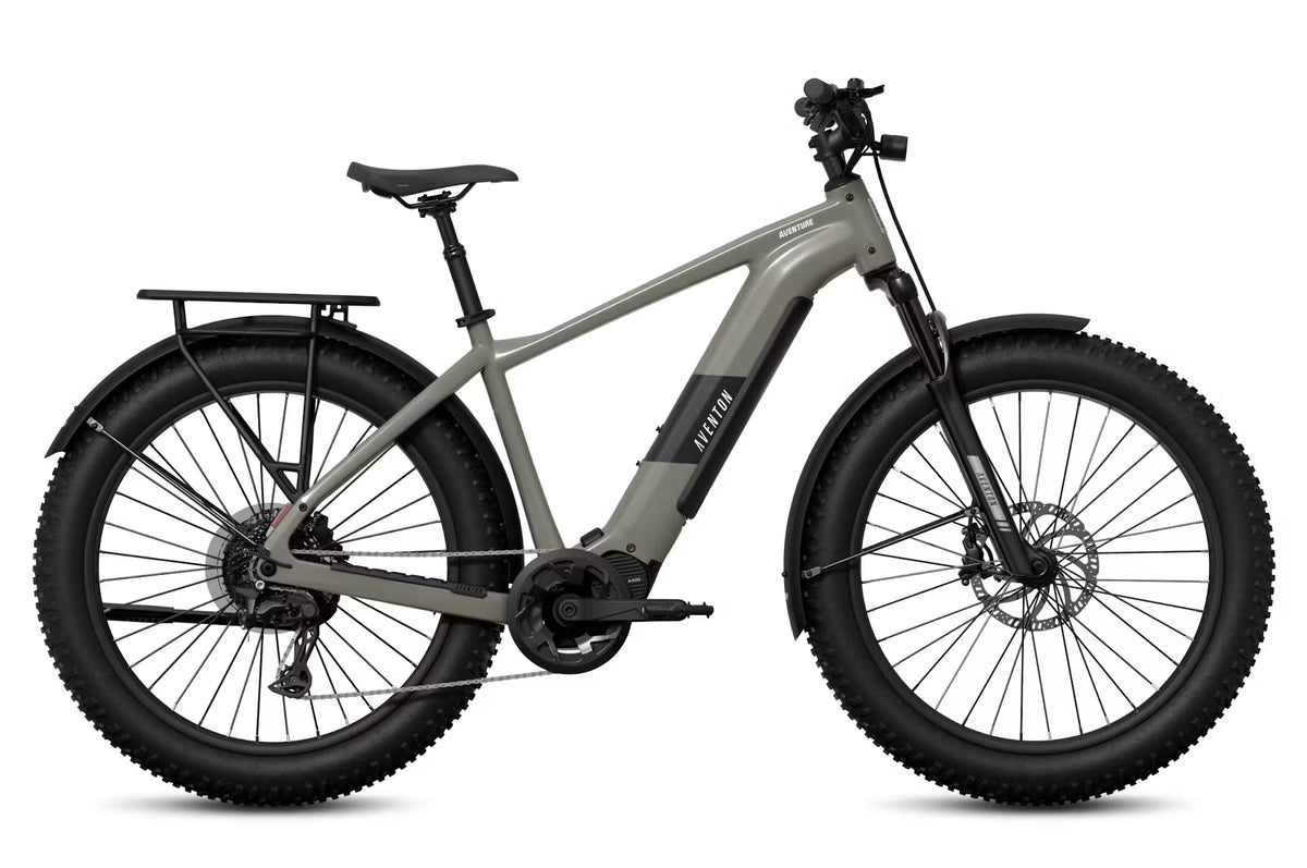Aventure M is the perfect blend of rugged capability, performance, and technology to help you explore further than ever before. With meticulously designed frame geometry, a 80mm suspension fork, and 4.0" tires, there's nowhere the Aventure M can't take you. The Aventon A100 mid-drive motor provides enough torque and power to conquer any terrain, giving you a responsive ride feel that can be easily customized with Ride Tune capabilities. With Aventon's electronic autoshift functionality ensuring you're always in the right gear at the right time, you can focus solely on making it to the next mountain peak. ACU technology brings a host of connectivity and added security features, including GPS† tracking and an integrated lock. In contrast, the updated display brings you important metrics like torque, cadence, and power to help you maximize every ride. No matter where you want to go, Aventure M will get you there.