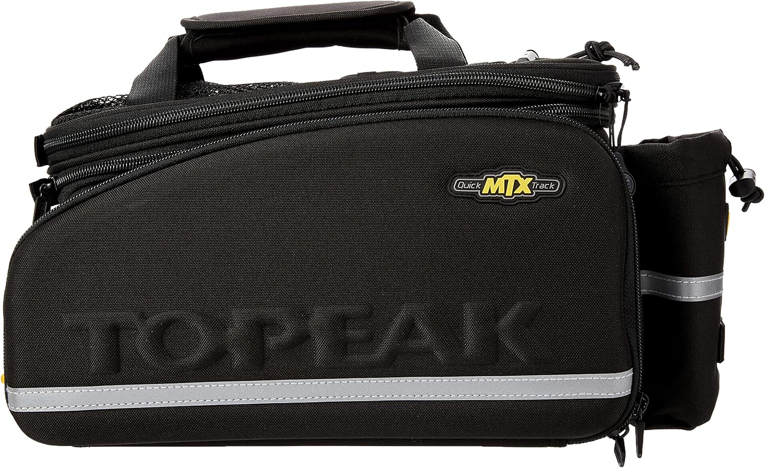 The MTX TrunkBag uses a unique material process to provide our largest, stiffest, and most weather resistant MTX series bag. In addition to the expandable top section and rear water bottle holder, the side panels expand to full panniers maximizing capacity. Compatible with all MTX QuickTrack® racks with attachable side frames. MTX Dual Side Frames are required when using panniers on MTX BeamRacks.